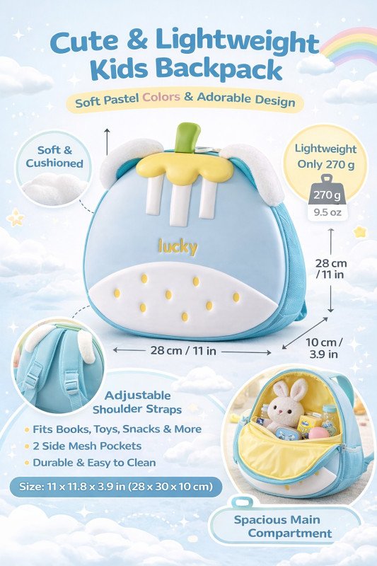 With its soft pastel colors, adorable design, and lightweight build, this backpack is the perfect companion for your little one’s daily adventures.